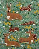 "Making templates was a natural inclination. My Mother taught me to sew at an early age, and my BFA was in fashion design. That included 3 ½ years of pattern making and draping. Matisse is one of my favorite artists. His story has always inspired me. When he became confined to a wheel chair, he switched gears and created paper cuttings. I have one rule when cutting templates. NO pencils to draw with. Cutting individual animals parts allows me freedom to play around with placement. Once I find personality and action in the animal parts, I tape them together and play with arranging composition."