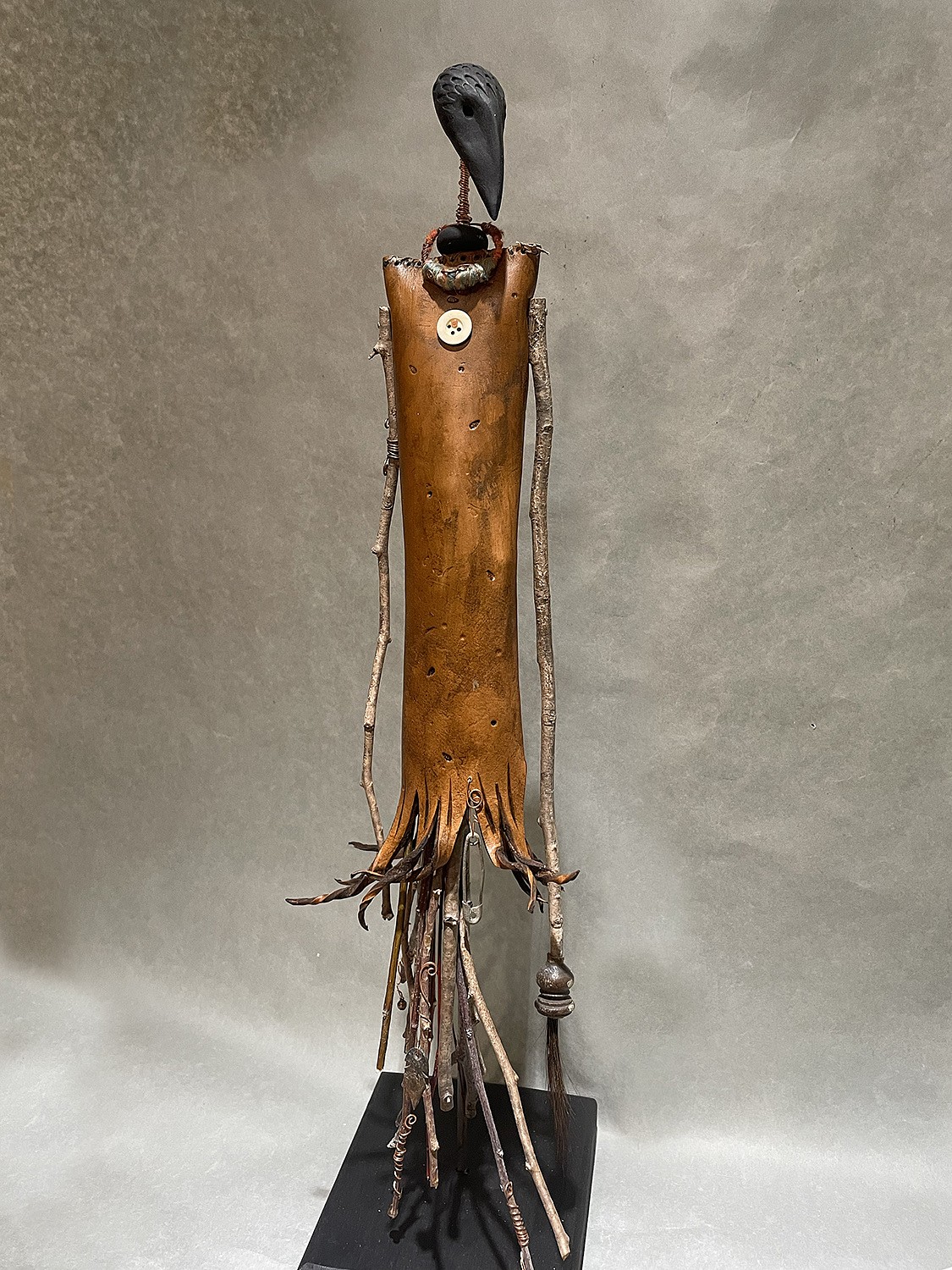 salvaged ebony, ceramic, found objects, 60 x 6 x 8 in.